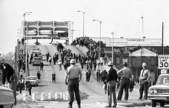 ![]() Tropas do estado do Alabama atacam manifestantes dos direitos civis em Selma, Alabama, no Domingo Sangrento, em 7 de março de 1965. | |||