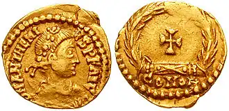 ![]() Soldo com efígie de Marciano | |||||