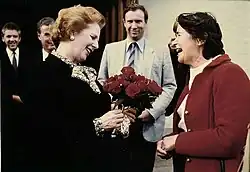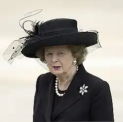 Margaret Hilda Thatcher, Baronesa Thatcher de Kesteven; LG, OM, PC, FRS, FRIC (Grantham, 13 de outubro de 1925 – Londres, 8 de abril de 2013) foi uma química, advogada, consultora e política britânica que exerceu o cargo de Primeira-ministra do Reino Unido de 1979 a 1990 e Líder da Oposição entre 1975 e 1979. Foi a primeira-ministra com o maior período no cargo durante o século XX e a primeira mulher a ocupá-lo. Thatcher também era conhecida pela alcunha "Dama de Ferro", dada por um jornalista soviético e que se associou ao seu estilo de liderança. Como primeira-ministra, implementou políticas que passaram a ser conhecidas como Thatcherismo.