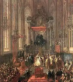 Maria Teresa é coroada "Rei da Hungria" na Catedral de São Martinho, em Bratislava