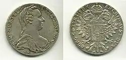 158. Em alemão: Maria Theresia von Gottes Gnaden Heilige Römische Kaiserinwitwe, Königin zu Ungarn, Böhmen, Dalmatien, Kroatien, Slavonien, Gallizien, Lodomerien, usw., Erzherzogin zu Österreich, Herzogin zu Burgund, zu Steyer, zu Kärnten und zu Crain, Großfürstin zu Siebenbürgen, Markgräfin zu Mähren, Herzogin zu Braband, zu Limburg, zu Luxemburg und zu Geldern, zu Württemberg, zu Ober- und Nieder-Schlesien, zu Milan, zu Mantua, zu Parma, zu Piacenza, zu Guastala, zu Auschwitz und Zator, Fürstin zu Schwaben, gefürstete Gräfin zu Habsburg, zu Flandern, zu Tirol, zu Hennegau, zu Kyburg, zu Görz und zu Gradisca, Markgräfin des Heiligen Römischen Reiches, zu Burgau, zu Ober- und Nieder-Lausitz, Gräfin zu Namur, Frau auf der Windischen Mark und zu Mecheln, Herzoginwitwe zu Lothringen und Baar, Großherzoginwitwe zu Toskana