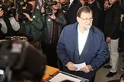 Em 20 de dezembro de 2015, a Espanha realizou suas 12ª eleições gerais desde a restauração do regime democrático e as primeiras eleições ocorridas durante o reinado de Felipe VI. Na corrida eleitoral, o Partido Popular foi o mais bem-sucedido ao obter a maior quantidade de votos e garantir 123 assentos no Congresso de Deputados. Apesar disto, o partido liderado por Rajoy perdeu 63 assentos no parlamento em comparação às eleições anteriores, ocorridas em 2011.[70][71]