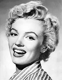 Marilyn Monroe ([ˈmærəlɪn mənˈroʊ] MARR-ə-lin-mən-ROH; nascida Norma Jeane Mortenson;[2] Los Angeles, 1 de junho de 1926 – Los Angeles, 4 de agosto de 1962) foi uma atriz, modelo e cantora norte-americana. Como estrela de cinema de Hollywood, é um dos maiores símbolos sexuais do século XX, imortalizada pelos cabelos loiros e as suas formas voluptuosas. Inicialmente, ficou famosa por interpretar personagens cômicos, tornando-se sucesso no cinema. Apesar de sua carreira ter durado apenas uma década, seus filmes arrecadaram mais de duzentos milhões de dólares até sua morte inesperada, em 1962. É considerada um dos maiores ícones da cultura popular.