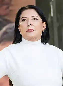 Marina Abramović (AFI: [marǐːna abrǎːmovitɕ]; em sérvio: Марина Абрамовић; romaniz.: Marina Abramović; nascida em Belgrado, República Socialista da Sérvia, República Socialista Federativa da Iugoslávia, em 30 de novembro de 1946) é uma artista performática.[1] Iniciou sua carreira no início da década de 1970 e manteve-se em atividade desde então. Seu trabalho explora os limites do corpo (body art), arte de resistência, as relações entre o artista e a plateia e as possibilidades da mente.[2] Estando ativa há mais de quatro décadas, Abramović considera-se a “avó da arte da performance".[3] Ela foi pioneira em uma nova noção de identidade artística ao trazer a participação de observadores, com foco em "confrontar a dor, o sangue e os limites físicos do corpo".[4] Em 2007, fundou o Instituto Marina Abramović (MAI), uma fundação sem fins lucrativos para a arte performática.[5][6]