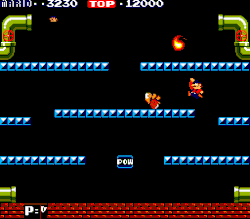 Enquanto o jogo progride, surgem elementos que aumentam a dificuldade, como bolas de fogo que se chocam pela tela ou percorrem-na de um lado para o outro.[8] Rodadas-bônus dão aos jogadores a chance de ganhar pontuação extra e vidas ao coletar moedas sem ter que lidar com os inimigos; o bloco "POW" se regenera a cada uma dessas telas.[8]