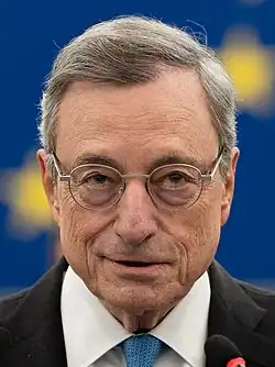 Mario Draghi GColIH (Roma, 3 de setembro de 1947) é um banqueiro, político, economista italiano e ex-primeiro-ministro do seu país (Governo Draghi).[2] Anteriormente, foi ainda presidente do Banco da Itália de 2006 a 2011 e presidente do Banco Central Europeu de 2011 a 2019.