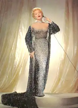 Em 1953, foi oferecido a Dietrich um então valor substancial de US$ 30 000 por semana,[46] para aparecer ao vivo no Sahara Hotel em de Las Vegas.[47] O show foi curto, consistindo apenas em algumas canções associadas a ela.[47] Sua ousadia foi demonstrada quando usou um "vestido nu", que consistia em um vestido de noite frisado de soufflé de seda, o que dava a ilusão de transparência. Criado por Jean Louis, a vestimenta atraiu um grande público e foi sucesso de publicidade.[47] Esse show foi tão bem sucedido que ela assinou contrato para aparecer no Café de Paris em Londres no ano seguinte; seus contratos de Las Vegas também foram renovados.[48]