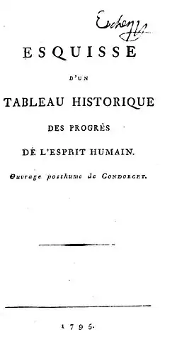 A ideia de escrever sobre o progresso do espírito humano já era acalentada por Condorcet há muitos anos: em 1782 no discurso de seu ingresso na Academia de Ciências de Paris já defende um dos traços principais de sua teoria: a superioridade do presente com relação ao passado: “Pela primeira vez o sistema geral dos conhecimentos humanos foi desenvolvido. O método de descobrir a verdade tornou-se uma arte que se pode aprender, a razão enfim encontrou o seu caminho. O gênero humano não cairá mais na obscuridade. Não está mais em poder de homem algum apagar esta chama”.