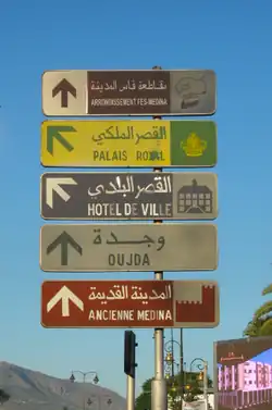 As línguas oficiais de Marrocos são o árabe e o berbere.[1][2][60] O grupo distintivo de dialetos árabes marroquinos é referido como darija. Aproximadamente 89,8%[61] de toda a população pode se comunicar em algum grau em árabe marroquino. A língua berbere é falada principalmente em três dialetos[62] (tarifit ou rifenho,[63] tachelhit ou chleuh[64] e tamazigue de Marrocos Central, ou simplesmente tamazight),[65] existindo também uma norma-padrão, o amazigue padrão marroquino.[2] Em 2008, Frédéric Deroche estimou que havia 12 milhões de falantes de berbere, representando cerca de 40% da população.[66] O censo populacional de 2004 relatou que 28,1% da população falava berbere.[61]