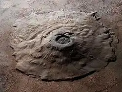- Período Amazônico (nomeado a partir da Amazonis Planitia): de 2,9-3,3 bilhões de anos atrás até o presente. Regiões amazônicas têm poucas crateras de impacto de meteoritos, mas são bastante variadas. O Monte Olimpo formou-se durante este período, juntamente com fluxos de lava em outros lugares de Marte.[52][53]