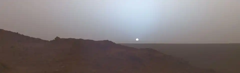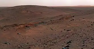 - Vista panorâmica de alta-resolução de uma paisagem marciana (em inglês)