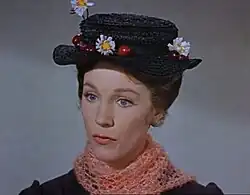 - Julie Andrews - Mary Poppins - babá com poderes mágicos, que vai trabalhar na casa do Sr. Banks para cuidar de seus filhos; ela chega na casa do patrão voando e usando um guarda-chuva como paraquedas e traz consigo diversas brincadeiras que mudam a vida daquela família.[10]