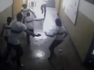 ![]() Sobreviventes escapando pelo corredor da Escola Municipal Tasso da Silveira durante o ataque | |