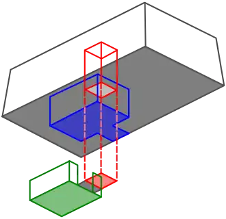 Vermelho: o poço que parte do topo da mastaba e se afunda a partir daí.