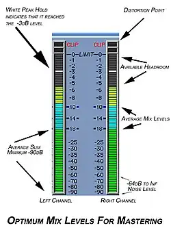 Imagem mostrando níveis de volume de um som em decibéis, típico de uma DAW.