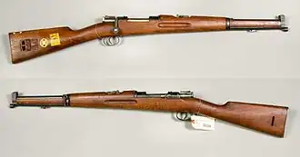 O Mauser Model 1893 é um fuzil por ação de ferrolho comumente chamado de "Mauser espanhol", embora o modelo tenha sido adotado por outros países em outros calibres, mais notadamente o Império Otomano. O M93 introduziu um carregador curto com uma coluna escalonada como padrão, com capacidade para cinco cartuchos de pólvora sem fumaça no calibre 7x57mm Mauser, que poderia ser rapidamente recarregado empurrando um pente de munições do topo do ferrolho aberto. Ainda tinha apenas dois parafusos fechados.