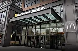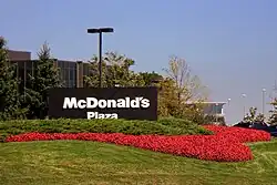 O antigo complexo da sede do McDonald's, o McDonald's Plaza, está localizado em Oak Brook, Illinois. Ele fica no local da antiga sede e área de estábulos de Paul Butler, o fundador da Oak Brook.[99] O McDonald's mudou-se para as instalações de Oak Brook de um escritório dentro do Chicago Loop em 1971.[100]