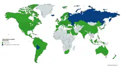 Países onde o McDonald's está disponível (em verde) ou esteve disponível (em azul).