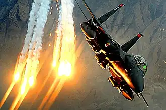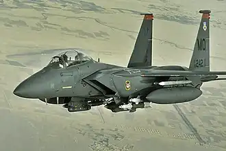 O McDonnell Douglas (agora Boeing) F-15E Strike Eagle é um caça de ataque multifuncional americano para todas as condições climáticas,[1] derivado do McDonnell Douglas F-15 Eagle. Projetado para o programa Dual-Role Fighter (DRF) (inicialmente chamado de Enhanced Tactical Fighter), o F-15E foi desenvolvido na década de 1980 para interdição em alta velocidade e longo alcance, sem depender de aeronaves de escolta ou guerra eletrônica. Os F-15E Strike Eagle da Força Aérea dos Estados Unidos (USAF) podem ser geralmente distinguidos de outras variantes americanas do Eagle pela camuflagem mais escura, tanques de combustível conformais (CFTs) e pods LANTIRN montados atrás das rampas de admissão do motor (embora os CFTs também possam ser instalados em variantes anteriores do F-15) e um cockpit em tandem.[2][3]