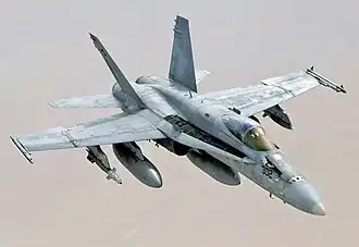 - ↑ "F/A-18 Hornet strike fighter" Arquivado em 2014-01-11 no Wayback Machine. U.S. Navy. Acessado em 12 de dezembro de 2008.