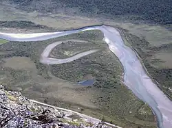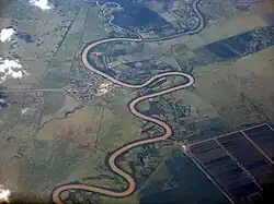 Meandro é feição geomorfológica vinculada ao trajeto de um rio, quando esse apresenta curvas acentuadas que migram lateralmente em sua planície aluvial. Essa migração afeta sua forma e posição de acordo com as variações de nível e vazão no decorrer das estações do ano.[1]