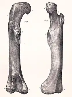 O úmero é muito robusto, com extremidades superiores e inferiores fortemente expandidas. O espécime de úmero OUMNH J.13575 tem um comprimento de 388 milímetros. A circunferência da haste é igual a cerca de metade do comprimento total do úmero. A cabeça do úmero continua para a frente e para trás em grandes saliências, formando juntas uma enorme placa óssea. No lado externo frontal da haste, uma grande crista deltopeitoral triangular está presente, a fixação do músculo peitoral maior e do músculo deltoide. Cobre cerca da metade superior do comprimento do eixo, com seu ápice posicionado bastante baixo. A ulna é extremamente robusta, devido ao seu tamanho absoluto, de constituição mais forte do que qualquer outro membro conhecido dos Tetanurae. O único exemplar conhecido, BMNH 36585, tem comprimento de 232 milímetros e circunferência mínima do eixo de 142 milímetros. A ulna é reta na vista frontal e possui um grande olécrano, o processo de fixação do músculo tríceps braquial. Rádio, punho e mão são desconhecidos.[22]