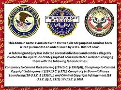 O Megaupload foi acusado pelos crimes de pirataria e de lavagem de dinheiro e foi fechado pelo FBI em 19 de janeiro de 2012. O fundador e 7 funcionários do site foram presos e indiciados por violações de leis relacionadas à pirataria. Até o momento não existe uma decisão oficial sobre o futuro do site, que atualmente está nas mãos da justiça norte-americana.[14]