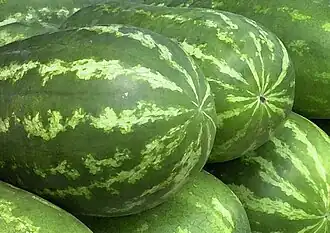 - ↑ fao.org (FAOSTAT). «Watermelon production in 2018, Crops/World regions/Production quantity (from pick lists)». Consultado em 29 de agosto de 2020