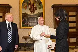 - ↑ Bailey, Sarah Pulliam. «Melania Trump is Catholic, she confirms after Vatican visit». Washington Post (em inglês). ISSN 0190-8286. Consultado em 24 de janeiro de 2021