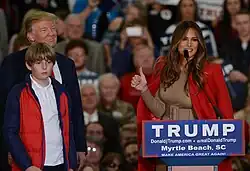 - ↑ Andrews-Dyer, Helena (20 de novembro de 2016). «Donald Trump confirms that wife Melania and son Barron will stay in New York after the presidential inauguration». Washington Post (em inglês). ISSN 0190-8286