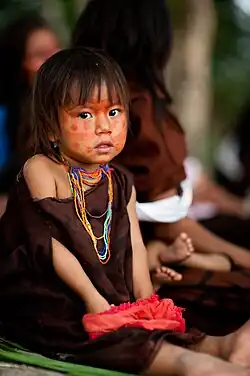 Menina indígena Ashaninka na Aldeia Apiwtxa, no Acre, no Brasil.