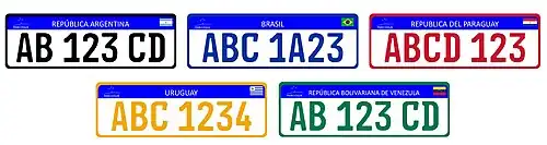 - ↑ OLIVEIRA, Maria Angélica (16 de dezembro de 2010). «Mercosul cria placa única para veículos». G1. Consultado em 11 de setembro de 2015