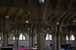 Os pilares ostentam como ornamentação, folhas de acanto. Algumas das paredes internas são revestidas até meia altura por azulejos provenientes da Bélgica e da Alemanha. O novo mezanino em estrutura metálica apresenta guarda-corpo tubular com vedação de vidro laminado liso incolor, assim como suas escadas e elevadores de acesso. O piso térreo é composto por piso elevado com placas de granito entre as bancas e, nas áreas adjacentes, de ladrilho hidráulico do tipo ‘9 dados’. O piso do mezanino é composto por réguas de madeira e trechos de vidro laminado translúcido. Os novos sanitários e as áreas de apoio aos restaurantes e lanchonetes apresentam paredes com revestimento cerâmico e piso de granito.[5]
