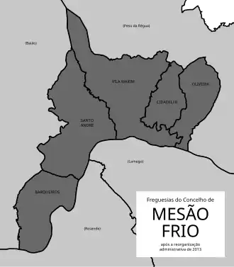 - Mesão Frio (Santo André) - Resultante da agregação das antigas freguesias de Santa Cristina, São Nicolau e Vila Jusã