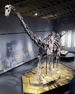 Um fóssil de um diplodoco, um dinossauro que viveu no Mesozoico.