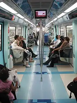 O fabricante japonês Kinki Sharyo construiu um total de 79 trens de cinco carros (60 na Linha Vermelha, 19 na Linha Verde). Eles são projetados para transportar 643 passageiros sentados e em pé, e incomum para um sistema de transporte de massa, os trens têm três classes de acomodação: Classe Gold (primeira classe Classe ), Feminina e Infantil (uma classificação que se estende a um maior número de carros nos horários de pico) e Silver Class regular (econômica).[16] O primeiro trem (5001) foi entregue a Dubai em março de 2008. O metrô tem operação sem motorista e usa a terceiro trilho coleta de corrente. Guardas treinados acompanham os passageiros para ajudar nas emergências.