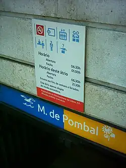 - ↑ «Horários e frequências - Metropolitano de Lisboa, E.P.E.». Metropolitano de Lisboa, E.P.E.