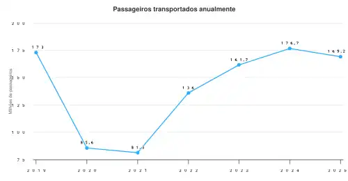 No final da década, o número de passageiros transportados havia voltado a subir, atingindo 169 milhões em 2018[14] e 173 milhões em 2019.[15]