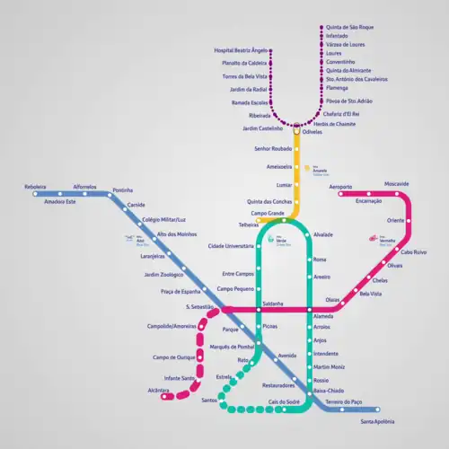 - ↑ Metropolitano de Lisboa : Plano de Expansão da rede Metropolitano de Lisboa: Lisboa, 2018: p.4