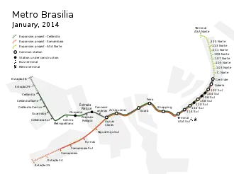 54. 1 2 3 4 Metrô DF (2016). «3.2.5 Região Integrada de Desenvolvimento Econômico do Distrito Federal e Entorno (DF/GO/MG)-Tabela 10 - Dados do sistema de metrô Metrô DF» (PDF). Confederação Nacional do Transporte-Transporte metroferroviário de passageiros, página 62. Consultado em 14 de abril de 2022