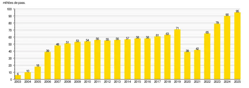 Em 2023, foram transportados mais de 79 milhões de passageiros, número que estabeleceu um recorde histórico de procura.[8] Esse marco foi ultrapassado em 2024, com 89,78 milhões de passageiros.[9]