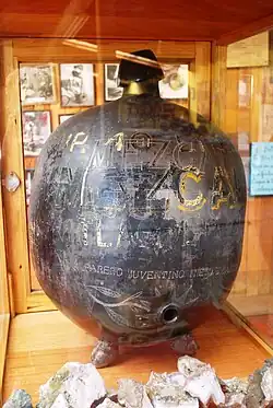 Ilustração (c. 1893) de um alambique Tarascán; um alambique modificado, do tipo filipino, com tábuas de madeira amarradas como câmara de fervura. Era usado pelo povo Purépecha para destilar o mezcal;[13] dois fatores ajudando esses pequenos produtores a evitar as rígidas proibições coloniais e que foram essenciais para a difusão e persistência da produção de bebidas destiladas a partir do ágave, no México: a fermentação clandestina em fossos subterrâneos, selados e escavados na rocha, uma técnica ameríndia anterior ao contato europeu, e o uso de pequenos alambiques de fácil utilização deste tipo, que podiam ser escondidos das autoridades e permitiam o uso de uma ampla variedade de espécies de ágave.[9]