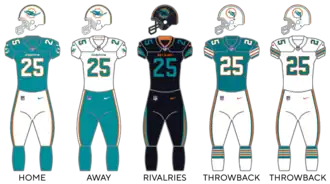 - ↑ «Miami Dolphins tweak their uniforms». miamiherald (em inglês)