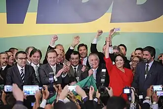 - ↑ Daniel Carvalho e Gustavo Porto (11 de abril de 2016). «Temer divulga áudio com discurso que faria após impeachment passar na Câmara». O Estado de S. Paulo. Consultado em 4 de maio de 2016