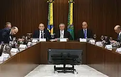 - ↑ Filipe Matoso, Fernanda Calgaro e Alexandro Martello (12 de maio de 2016). «Temer fala em manter programas sociais e reequilibrar as contas». G1. Consultado em 12 de maio de 2016