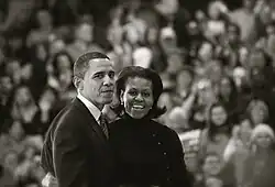 - ↑ Pallasch, Abdon M. (26 de agosto de 2008). «Michelle Obama celebrates Chicago roots». Chicago Sun-Times. Consultado em 26 de agosto de 2008
