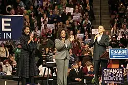 - ↑ Kornblut, Anne E. & Murray, Shailagh (19 de dezembro de 2007). «'I'm Tired of Politics as Usual'; Oprah Winfrey Makes Her Case for Sen. Obama's Presidential Candidacy». The Washington Post