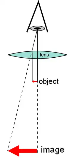 Um microscópio simples é um microscópio que usa uma lente ou conjunto de lentes para ampliar um objeto através de ampliação angular sozinho, dando ao espectador uma imagem virtual ampliada ereto.[2][3] Foi Galileu quem trabalhou com o primeiro microscópio.[4] A utilização de uma única lente convexa ou grupos de lentes ainda se encontram em dispositivos de ampliação simples, tais como a lupa, e oculares como telescópios e microscópios.[carece de fontes?]