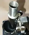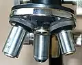 Revólver ou Óptico Disco adaptado à zona inferior do tubo, que suporta duas a quatro objectivas de diferentes ampliações: por rotação é possível trocar rápida e comodamente de objectiva.