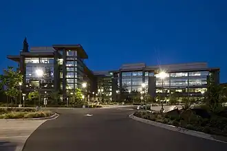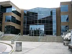 Entrada do edifício 17 no campus principal de Microsoft em Redmond, Washington